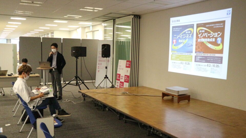 今回のワークショップでは、支援対象者5名によるプレゼンテーションの他、池田泉州銀行の青田強氏より、「ニュービジネス助成金/イノベーション研究開発助成金について」と題した特別講座を行いました。ワークショップ参加者間で活発な交流を行い、支援対象者のプラン実行を推進する機会となりました。